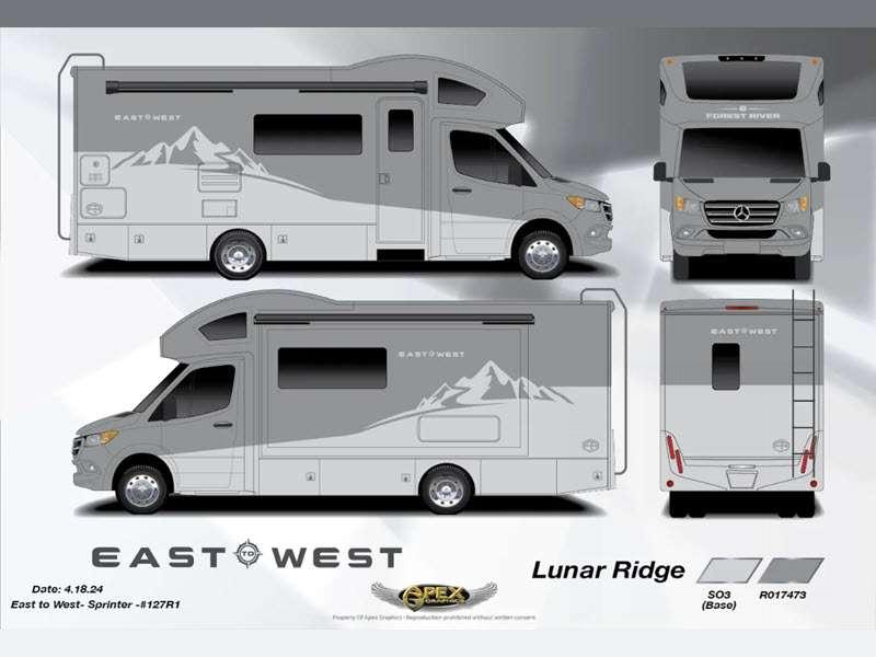 Sleeps 5 Slides 1 Length 25 ft 5 in Ext Width 7 ft 11 in Ext Height 11 ft 3 in Int Height 7 ft Exterior Color Lunar Ridge, Orion, Treeline Hitch Weight 4200 lbs GVWR 11030 lbs Fresh Water Capacity 35 gals Grey Water Capacity 32 gals Black Water Capacity 32 gals Generator 4,000 Watt Propane Fuel Type Diesel Engine 3.0L V6 Turbo Diesel Chassis Mercedes Sprinter 3500 Horsepower 168 hp Fuel Capacity 26 gals Wheelbase 171 in Number Of Bunks 1 Available Beds RV Queen Torque 325 ft-lb Refrigerator Type 12V Refrigerator Size 10.7 cu ft Convection Cooking Yes Cooktop Burners 3 Number of Awnings 1 Axle Weight Front 4410 lbs Axle Weight Rear 7720 lbs LP Tank Capacity 80 lbs. AC BTU 15000 btu TV Info 12V Swing Arm TV Awning Info 16' Power with LED Light Strip Gross Combined Weight 15250 lbs Shower Type Standard Solar Wattage 200 watts Similar Floorplans