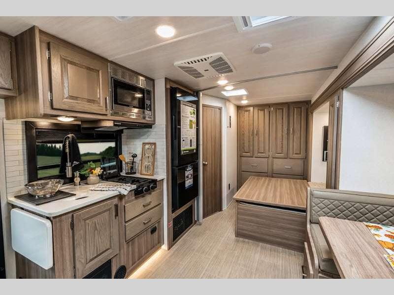 The driver will love the integrated smart dash with voice command so they can keep their eyes on the road, and parking is easier than ever with the back-up/side view cameras with a monitor. You will appreciate the solid construction that features 1.5" sidewalls with Azdel composite exterior, and there is a crane gold sidewall finish that is sure to turn heads as you travel down the highway. Some of the interior comforts included are the 7' height, 15K A/C, 12V TV, and more!