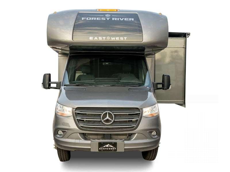 Head to far off adventures in an Entrada M-Class Class C diesel motorhome by EAST TO WEST! The Mercedes Sprinter 3500 chassis provides a durable foundation and the 3.0L turbo diesel engine has the power to get you where you're going, all without breaking the bank!