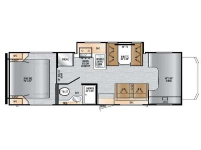 Sleeps 5 Slides 1 Length 29 ft 11 in Ext Width 8 ft 5 in Ext Height 11 ft 3 in Int Height 7 ft GVWR 14500 lbs Fresh Water Capacity 35 gals Grey Water Capacity 28 gals Black Water Capacity 28 gals Furnace BTU 30000 btu Generator 6000W Fuel Type Gasoline Chassis Ford E-450 Fuel Capacity 55 gals Wheelbase 190 in Number Of Bunks 1 Available Beds King Refrigerator Type 12V Dual Swing Refrigerator Size 10.7 cu ft Convection Cooking Yes Cooktop Burners 3 Number of Awnings 1 Axle Weight Front 5000 lbs Axle Weight Rear 9600 lbs LP Tank Capacity 40 lbs Water Heater Type Tankless AC BTU 15000 btu TV Info 12V Smart TV Awning Info 15' 6" Power with LED Light Strip Gross Combined Weight 22000 lbs Shower Type Standard Electrical Service 50 amp Similar Motor Home Class C Floorplans
