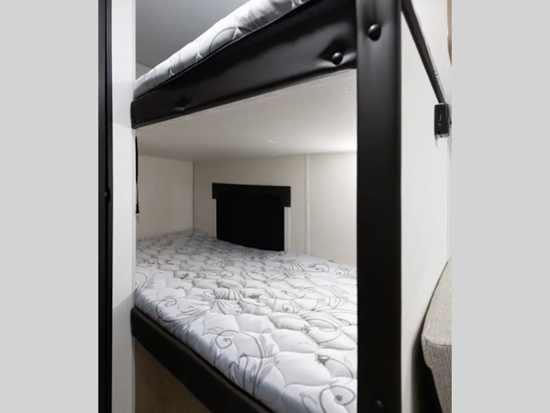 Sleeps 5 Length 21 ft 9 in Ext Width 7 ft 6 in Ext Height 10 ft 6 in Hitch Weight 475 lbs GVWR 5575 lbs Dry Weight 3744 lbs Cargo Capacity 1981 lbs Fresh Water Capacity 26 gals Grey Water Capacity 23 gals Black Water Capacity 23 gals Tire Size 14" Furnace BTU 20000 btu Number Of Bunks 2 Available Beds Queen Refrigerator Type 12V High Efficiency Residential w/Travel Lock Refrigerator Size 7.1 cu ft Number of Awnings 1 Water Heater Type Tankless AC BTU 13500 btu Awning Info 12' Power with LED Light Strip Axle Count 1 Shower Type Tub/Shower Combo Similar Floorplans