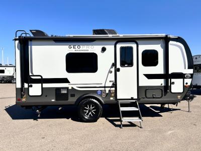 With any Rockwood GEO Pro travel trailer by Forest River you will enjoy easy towing, durable construction, and off-road capabilities with larger laminated roof! Each model is constructed with complete composite wall construction for added strength and durability, and Dexter® axles that will make towing easier than ever. Inside, you'll find sleek back up camera prep for added security, a refrigerator and a microwave, plus many other interior amenities that will make you feel at home on the road.