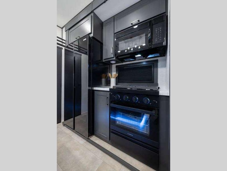 Sleeps 6 Slides 2 Length 36 ft 10 in Ext Width 8 ft 6 in Ext Height 13 ft 6 in Hitch Weight 2555 lbs GVWR 16555 lbs Dry Weight 10879 lbs Cargo Capacity 5676 lbs Fresh Water Capacity 150 gals Grey Water Capacity 132 gals Black Water Capacity 40 gals Tire Size 16" Furnace BTU 35000 btu Fuel Capacity 40 gals Number Of Bunks 1 Available Beds King Refrigerator Type 12V Refrigerator Size 15.7 cu ft Convection Cooking Yes Number of Awnings 1 Axle Weight 7000 lbs Garage Size 19 ft 7 in LP Tank Capacity 30 lbs Water Heater Type Tankless AC BTU 30000 btu Awning Info With LED Lights Axle Count 2 Number of LP Tanks 2 Shower Type Standard Solar Wattage 200 watts Similar Floorplans