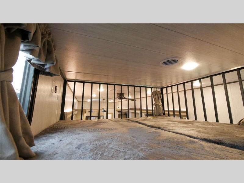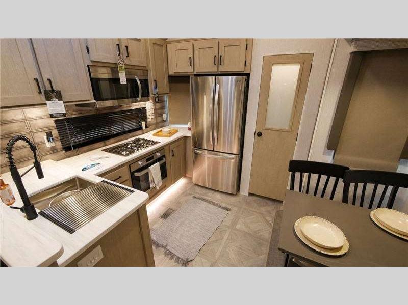 There is a heated and enclosed Accessibelly that will provide protection against the elements and road debris during transport. Residential features, such as stainless-steel kitchen appliances and stylish roller shades will let you enjoy extended stays in comfort. A tankless water heater will provide endless hot showers, and you'll stay entertained with the JBL stereo!