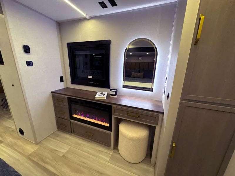 - Full-Profile Front Cap with HUGE Functional Wardrobe (378FL Uses Panoramic Windshield in-place-of Wardrobe)
