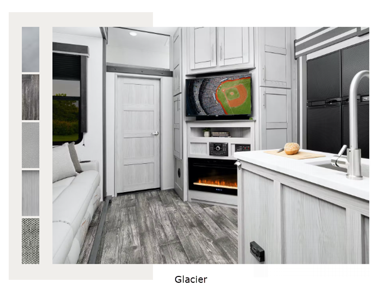 Each model features large tinted safety glass windows, furrion wireless backup camera prep, and a wide-body construction to fit your favorite toys on board. Inside, you will love 5K lbs. frame welded tie-downs, new larger shower, and 12V refrigerator. Also, check out the beautiful interior designs and additional sleeping space for guests!