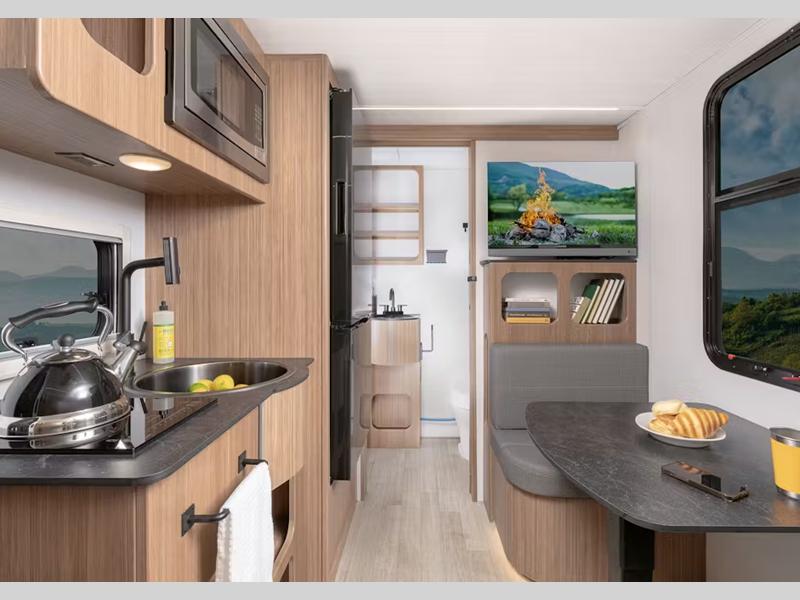 Sleeps 3 Tire Size ST235/75R15D Furnace BTU 20000 btu Available Beds RV Queen Refrigerator Type 12V Cooktop Burners 2 Number of Awnings 1 LP Tank Capacity 20 lbs Water Heater Type Tankless AC BTU 13500 btu Awning Info 9' Power Axle Count 1 Number of LP Tanks 2 Shower Type Standard -