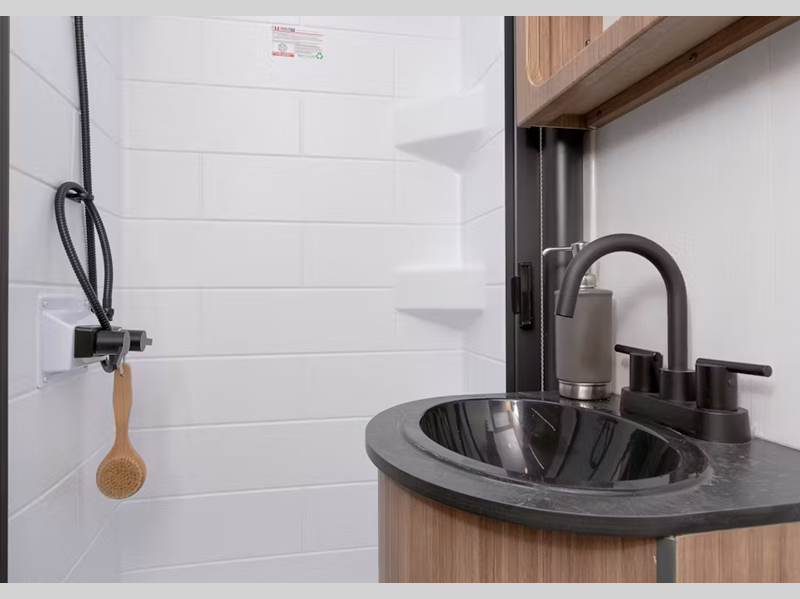 The ergonomically designed single-axle will make towing easier than ever, and it's unique exterior is sure to turn heads as you travel to your destination. There is an exclusive automotive-finished aluminum exterior, a 100% composite floor, and a one-piece heated and enclosed underbelly to ensure years of use. Inside, you'll be met with blackout night shades, solid surface countertops, bedside outlets, and an upgraded Oxygenics Fury showerhead to name a few comforts.