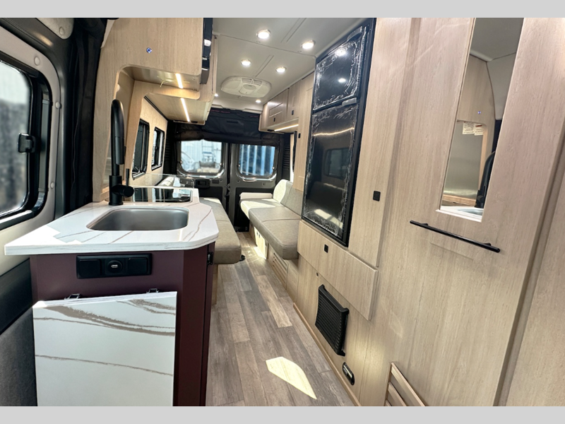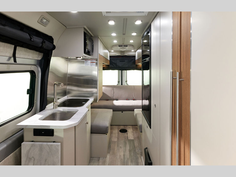 Sleeps 2 Length 20 ft 9 in Ext Width 6 ft 11 in Ext Height 9 ft 5 in Int Height 6 ft 2 in Hitch Weight 3500 lbs GVWR 9350 lbs Cargo Capacity 1660 lbs Fresh Water Capacity 33 gals Grey Water Capacity 14 gals Black Water Capacity 8.5 gals Tire Size LT225/75R16E Black Wall Furnace BTU 11500 btu Generator Underhood Fuel Type Gasoline Engine 3.6L V6 24 Valve Chassis Ram ProMaster 3500 Extended Van Horsepower 280 hp Fuel Capacity 24 gals Wheelbase 159 in Available Beds Two Twin, King Conversion Refrigerator Type 12V Refrigerator Size 5.3 cu ft Cooktop Burners 2 Number of Awnings 1 LP Tank Capacity 5.9 gals Water Heater Type Truma Aqua Go On Demand AC BTU 13500 btu TV Info Coach 24" Smart TV Awning Info 13' Power Gross Combined Weight 11500 lbs Shower Type Wet/Bath Shower Electrical Service 30 amp Solar Wattage 300 watts -