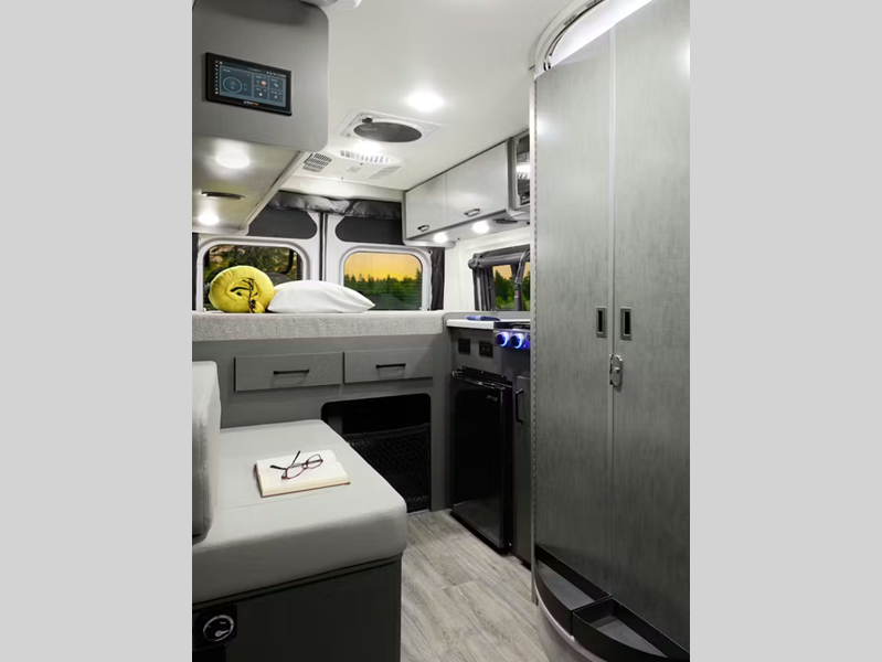 Sleeps 2 Length 17 ft 11 in Ext Width 6 ft 9 in Ext Height 9 ft 5 in Int Height 6 ft 3 in Interior Color Charcoal Fusion Exterior Color Silver, White, Ceramic Gray Hitch Weight 5000 lbs GVWR 8550 lbs Fresh Water Capacity 20 gals Grey Water Capacity 20 gals Black Water Capacity 4.75 gals Furnace BTU 14300 btu Generator 2800 Gas Fuel Type Gas Engine 3.6L Pentastar V6 Chassis RAM Promaster 1500XT Horsepower 276 hp Fuel Capacity 24 gals Wheelbase 136 in Torque 250 ft-lb Refrigerator Type Single Door 12V Electric Cooktop Burners 2 LP Tank Capacity 24.78 lbs Water Heater Capacity 2.64 gal Water Heater Type Combi Eco AC BTU 11000 btu Gross Combined Weight 11500 lbs Shower Type Wet/Bath Shower Electrical Service 30 amp Solar Wattage 200 watts Similar Floorplans
