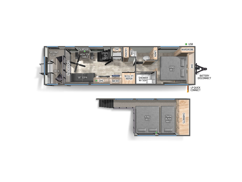 MINI TWO LOFT / TWO BEDROOMS / FRONT WALKAROUND BED / BACK PATIO/ WASHER DRYER COMBO/ ICE MAKER/ DISHWASHER