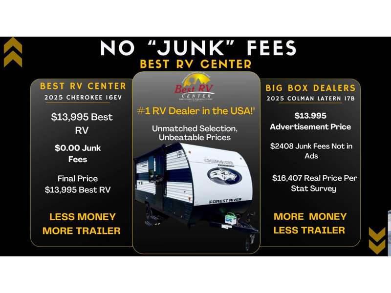 Best RV Center is not responsible for any misprints, typos, or errors found in our website pages. Any price listed excludes sales tax, registration tags, and delivery fees. Manufacturer pictures, specifications, and features may be used in place of actual units on our lot. Please contact us @800-920-9970 for availability as our inventory changes rapidly. All calculated payments are an estimate only and do not constitute a commitment that financing or a specific interest rate or term is available.