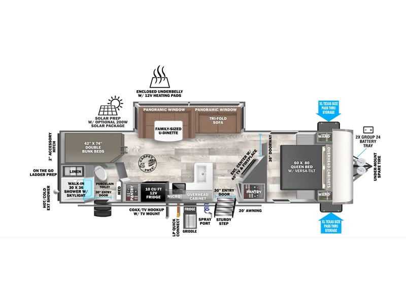 - Enclosed Underbelly w/ 12V Tank Heaters on all Holding Tanks