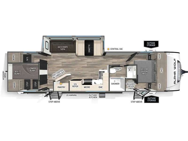 - Full Bed Overhead Cabinet Storage (Non-Bed Slide Models)