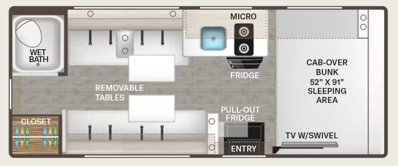- Cab-Over Sleeping Area with Telescoping Bunk Ladder