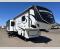 One look at this fifth wheel and you'll be sold. You'll find tons of counter space in the rear kitchen, along with a kitchen island, a large pantry, and a hutch for even more storage. Visit in the main living area on the two theater seats and tri-fold sofa, or you may want to head outdoors under the two power awnings! There is even an outside refrigerator here to entertain guests. The spacious full bath will allow you to clean up after a day of adventuring, and here you'll find a full-size shower with sliding glass doors and a seat, plus a dual sink vanity. The front private bedroom will feel just like home with its queen bed slide out, large wardrobe, and dresser to keep your clothes tidy.